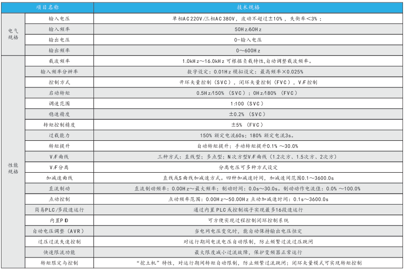 TVF15系列变频器适用于三相异步电机的速度与转矩控制,具有优异的动态性能和强大的过载能力,采用模块化的高功率密度设计,可在较恶劣的工况下长时间可靠工作,满足多种应用场合,可用于传送、机床、风机、水泵、纺织等各种电机驱动场合。